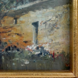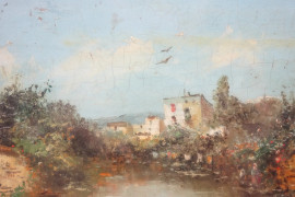 Paesaggio fluviale, olio su tavoletta, cm 11,5x20, XX secolo, entro cornice
