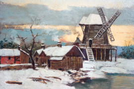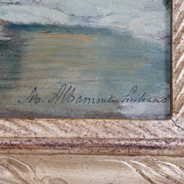 Paesaggio invernale, olio su cartone pressato, fimato in basso a destra M. Albamonte Siciliano, cm 17x24, entro cornice