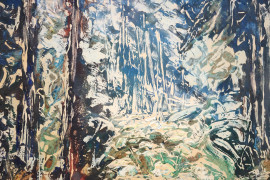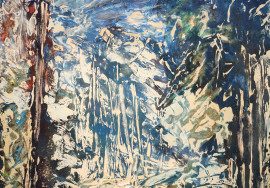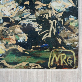 Paesaggio, tecnica mista su carta, cm 48x33, siglato MRG, entro cornice