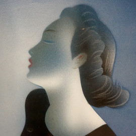 Pattinatrice, aerografo su carta, firmato in alto a destra Mancioli, misure comprese passepartout cm 61,5x47, entro cornice