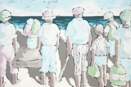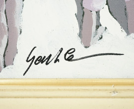 Personaggi (1992), olio su tela, firmato in basso a sinistra Gentile, cm 30x60, entro cornice
