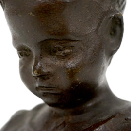 Piccola scultura in bronzo raffigurante il busto di un bambino, su base in marmo, XIX-XX secolo, altezza cm 13,5 (difetti)