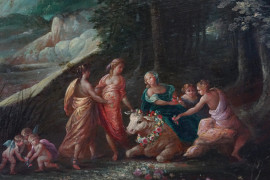 Pittore del XIX secolo, Ratto di Europa, olio su rame, cm 30x40, entro cornice