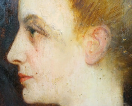 Profilo di donna, olio su tavoletta, cm 35x28, XX secolo, entro cornice