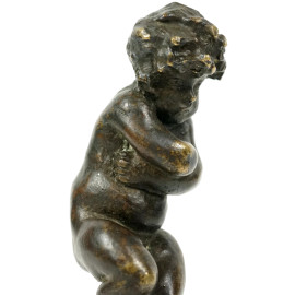 Putto, scultura in bronzo brunito, cm h 17, firmata, (difetti)