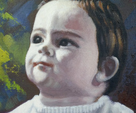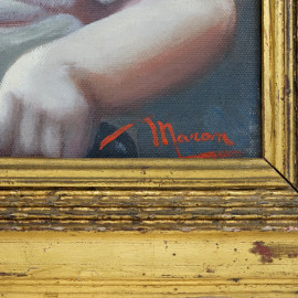 Ritratto di bambino, olio su cartone telato, cm 35x29,5, firmato M. Maran, entro cornice