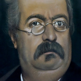 Ritratto di uomo con occhiali, pastello su cartoncino in assetto ovale, XX secolo, cm 75x50, entro cornice