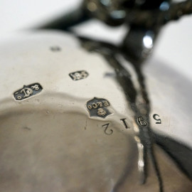 Scaldavivande in metallo argentato a forma di piccolo calderone, Birmingham, George Richards Elkington, XIX secolo, altezza cm 34,5, (mancanze)