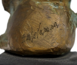 Scultura in bronzo raffigurante una figura femminile seduta, piedistallo in legno, firmata, altezza cm 25,5