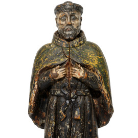 Scultura in legno policroma rappresentante San Francesco, arte iberica, XVIII secolo, altezza cm 58,5