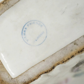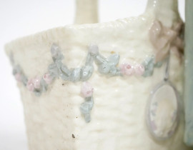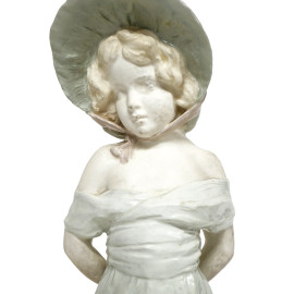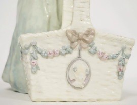 Scultura in porcellana policroma raffigurante una fanciulla con un cesto, Vienna Faience, prima metà del XX secolo, altezza cm 40 (lievi difetti)