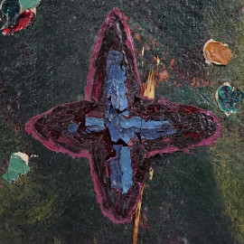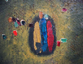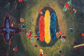 Senza titolo, tecnica mista su tela, cm 68x151, siglato e datato, entro cornice, (cadute di colore)