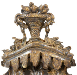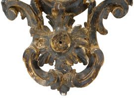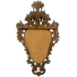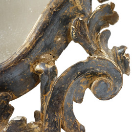 Specchiera in legno intagliato e argentato a mecca, decori a volute, XVIII secolo, ingombro cm 94x53