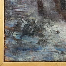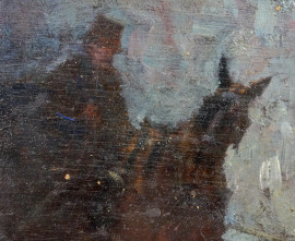 Strada con carrozza, olio su tavoletta, cm 13x10, firmato a sinistra, entro cornice