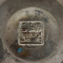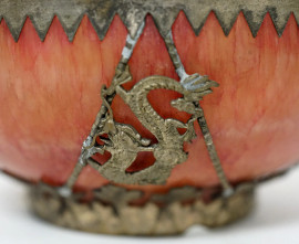 Tre bowls in pietre dure e metallo argentato, manifattura orientale, inizi XX secolo, cm 5x11, (difetti)