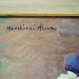 Vaso di fiori, olio su tela, XX secolo, firmato, cm 50x40, entro cornice