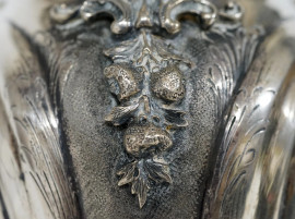Vaso in argento sbalzato, cesellato e niellato, con 3 cabochon, cm h 25, peso gr. 680