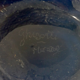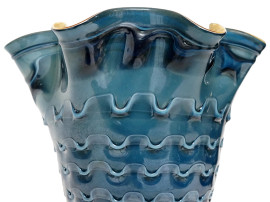 Vaso in vetro incamiciato blu e ocra, Murano, XX secolo, firmato sotto la base "Ghisetti Murano", altezza cm 32,5