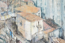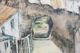 Veduta di città, olio su tela, firmato in basso a destra Puccini, cm 53,5x35,7, entro cornice