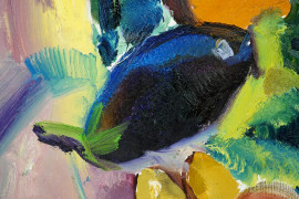 Natura morta, olio su tela, firmato e datato in basso a destra Ilir Zefi [19]96, cm 90x50