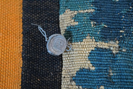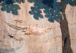 Arazzo rappresentante un paesaggio boschivo, XIX secolo, cm 207x180, (difetti)