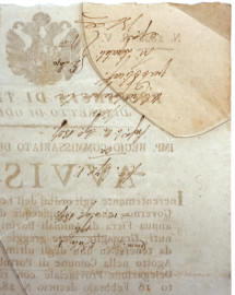 Avviso inerente l' "annua Fiera di Animali Bovini [...]", Oderzo (TV), 28 giugno 1827, cm 41x26,5, entro cornice, (difetti)