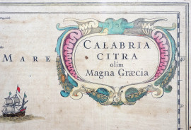 Calabria Citram olim Magna Grecia, XIX secolo, incisione su carta, cm 52x63 compreso passepartout, entro cornice, (difetti)