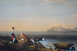 Capri, incisione a colori da G.E. Hering (1805-1879), XIX secolo, cm 20x31, entro cornice, (difetti)