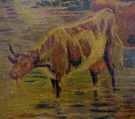 STAMPA RAPPRESENTANTE UNA PAESAGGIO FLUVIALE CON ARMENTI, CM 51X39, ENTRO CORNICE