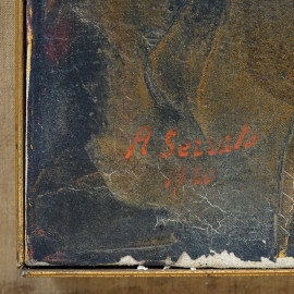 Donna seduta, XX secolo, olio su tela, cm 90x81, entro cornice, difetti)