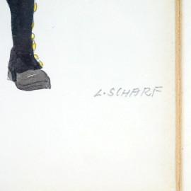 Gouache su carta raffigurante moschettiere, cm 24x37 compreso passepartout, XIX - XX secolo, entro cornice