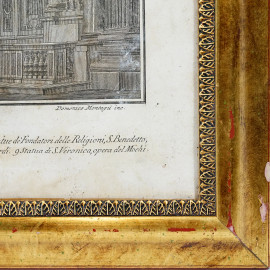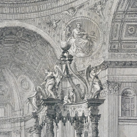 Incisione su carta raffigurante interno della basilica di San Pietro, XIX secolo, cm 53,5x75,5, entro cornice, (difetti)