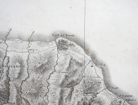 Incisione su carta raffigurante tratto di costa ionica calabrese, Napoli 1788, cm 61,5x89, entro cornice, (difetti)
