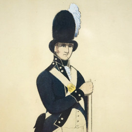 Lotto di due stampe acquerellate, “Oxford University Volunteer”e ”Oxford Loyal Volunteer”, cm 41,5x29, fine XIX secolo, entro cornici