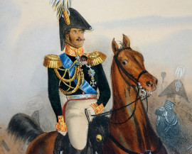 Lotto di tre stampe raffiguranti soldati dell’Esercito Imperiale Russo, cm 31x22, XX secolo, entro cornici