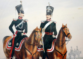 Lotto di tre stampe raffiguranti soldati dell’Esercito Imperiale Russo, cm 31x22, XX secolo, entro cornici