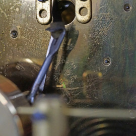 Pendola da tavolo in legno con quadrante circolare, USA, XX secolo, altezza cm 24, (difetti, meccanismo da revisionare)