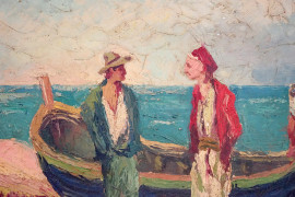 Pescatori, XX secolo, olio su tela, cm 50x70, firmato in basso a sinistra, entro cornice, (difetti)