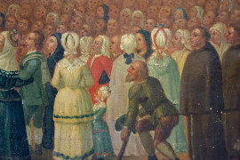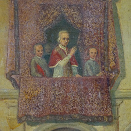 Pittore romano del XVIII secolo, La benedizione papale, olio su tela, cm 95x122 (difetti e cadute di colore)