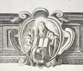 SALUTEM ET ORATIONUM SUFFRAGIUM SALUTARE, incisione del XVIII secolo, cm 45,5x66, entro cornice (difetti alla carta)