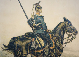 Stampa raffigurante Ulano in vedetta, inizi XX secolo, cm 50x35, entro cornice