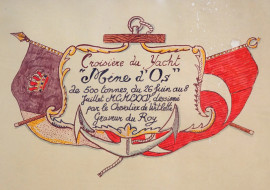 Stampa ritoccata raffigurante la rotta percorsa dallo Yacht "Mine d’Os", cm 37x68, entro cornice