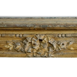 Tavolinetto ovale in legno laccato e intagliato, con piano in marmo e gambe a colonne rastremate, inizio XX secolo, cm 74x95x65, (difetti)