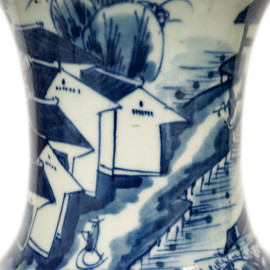 Vaso in porcellana bianca e blu decorato a paesaggi e motivi geometrici, Cina, XX secolo, altezza cm 36