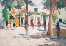 Villa Comunale a Sorrento, XX secolo, olio su tavoletta, cm 30x40, firmato in basso a sinistra, entro cornice