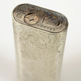 Accendino Cartier in argento, firmato sotto la base Cartier Paris, E44186, entro custodia originale (da revisionare)