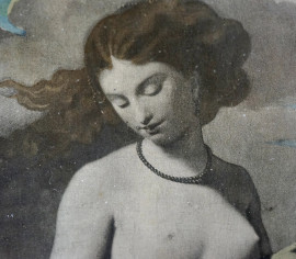 Alla fonte, stampa su carta, XIX-XX secolo, cm 40x20 compreso passepartout, entro cornice