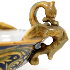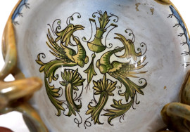 Alzatina in ceramica a lustro policroma con decori vegetali, XX secolo, cm 13,5x19