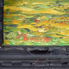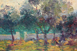 Antonio Ballero (Nuoro 1864 – Sassari 1932), Alberi, olio su cartone, firmato in basso a sinistra, titolato e datato sul retro maggio 1929, cm 25x33,5, entro cornice (cadute di colore)