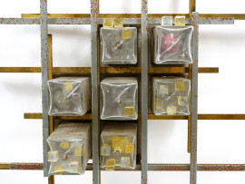 Applique in metallo e vetro, Albano Poli per Poliarte, anni '70, 73x93x22, (difetti, mancanze)